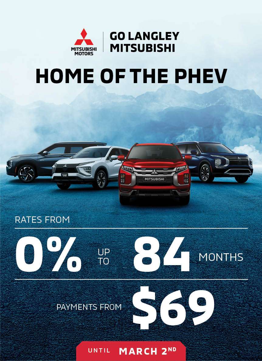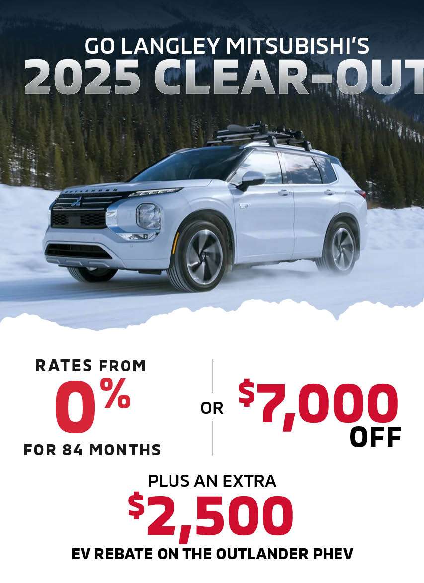 Go Langley Mitsubishi carries the full Mitsubishi line-up of new and used cars and SUVs including the Mitsubishi Lancer, Mitsubishi Lancer Sportback, Mitsubishi Lancer Evolution (Mitsubishi EVO), Mitsubishi Outlander, Mitsubishi Lancer Ralliart, Mitsubishi Lancer Sportback Ralliart, Mitsubishi RVR and the Mitsubishi Mirage. We welcome you to visit Go Langley Mitsubishi today to test drive a new or used Mitsubishi SUV or car and discover the incredible warranties that make Mitsubishi vehicles the best backed cars in the world.